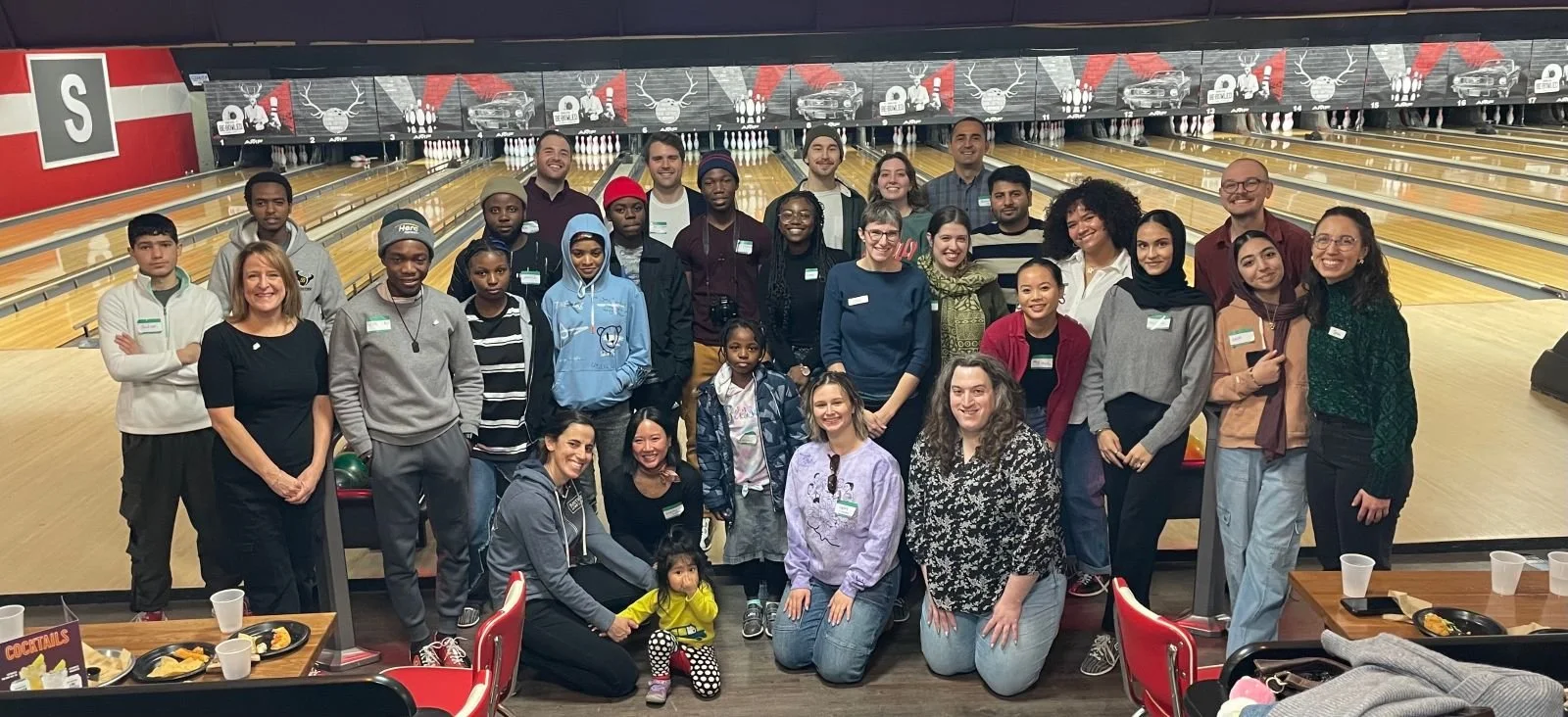 Our staff, board, and Youth Steering Committee at a bowling mixer in December.